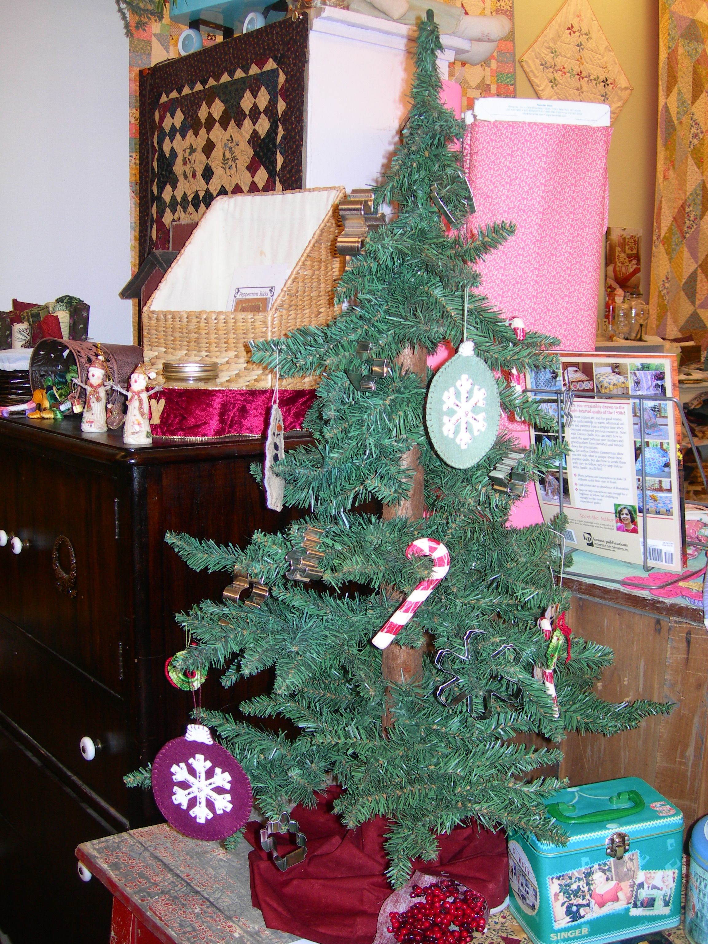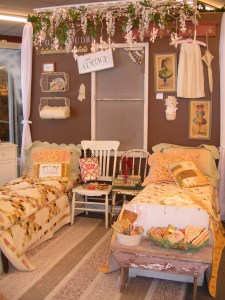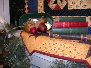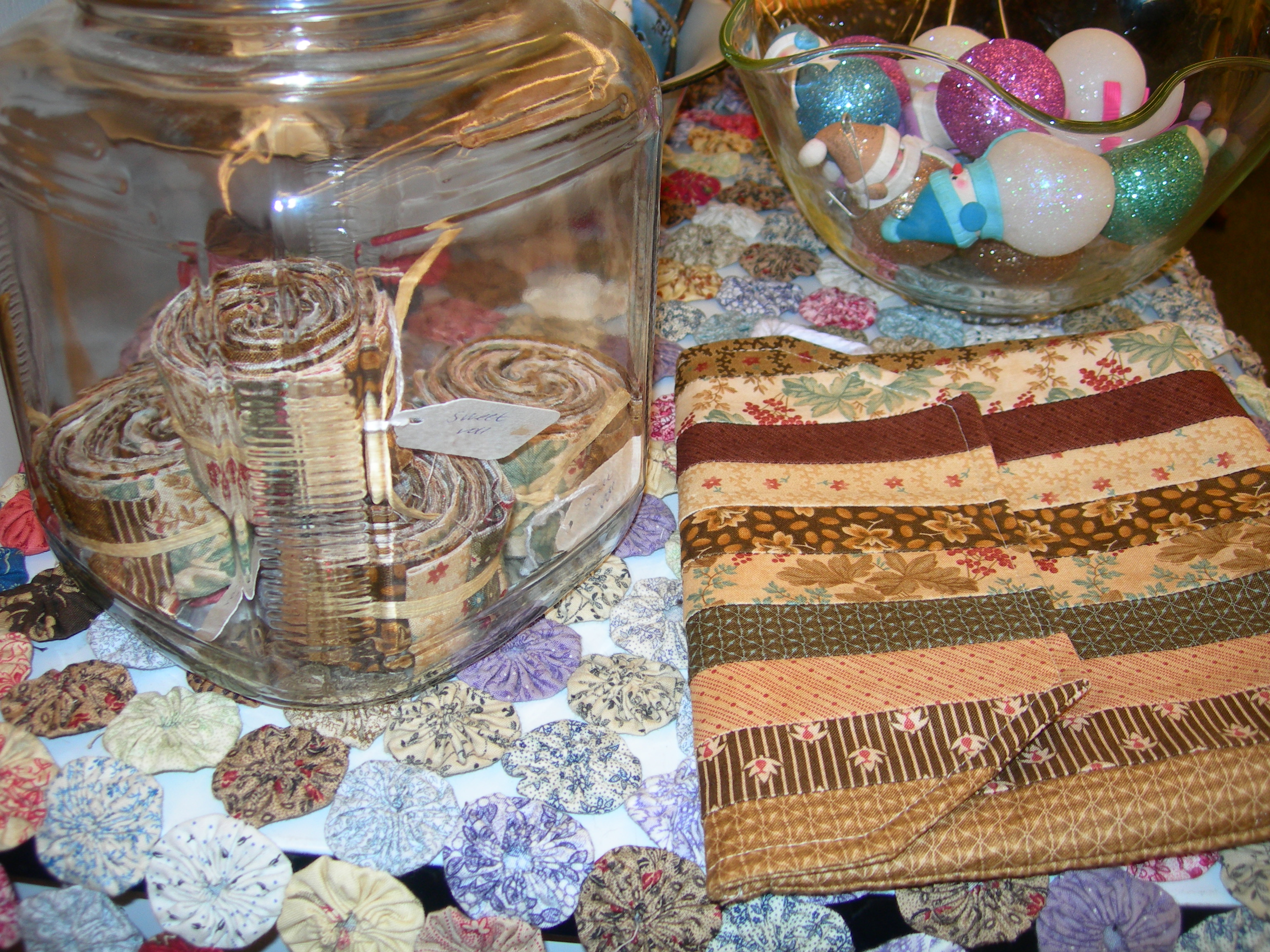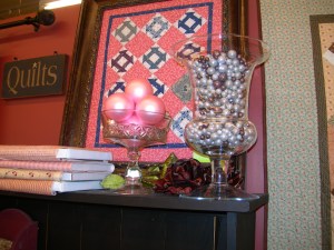 antique green-handled kitchenware compliment this antique looking Tina’s Baskets quilt.