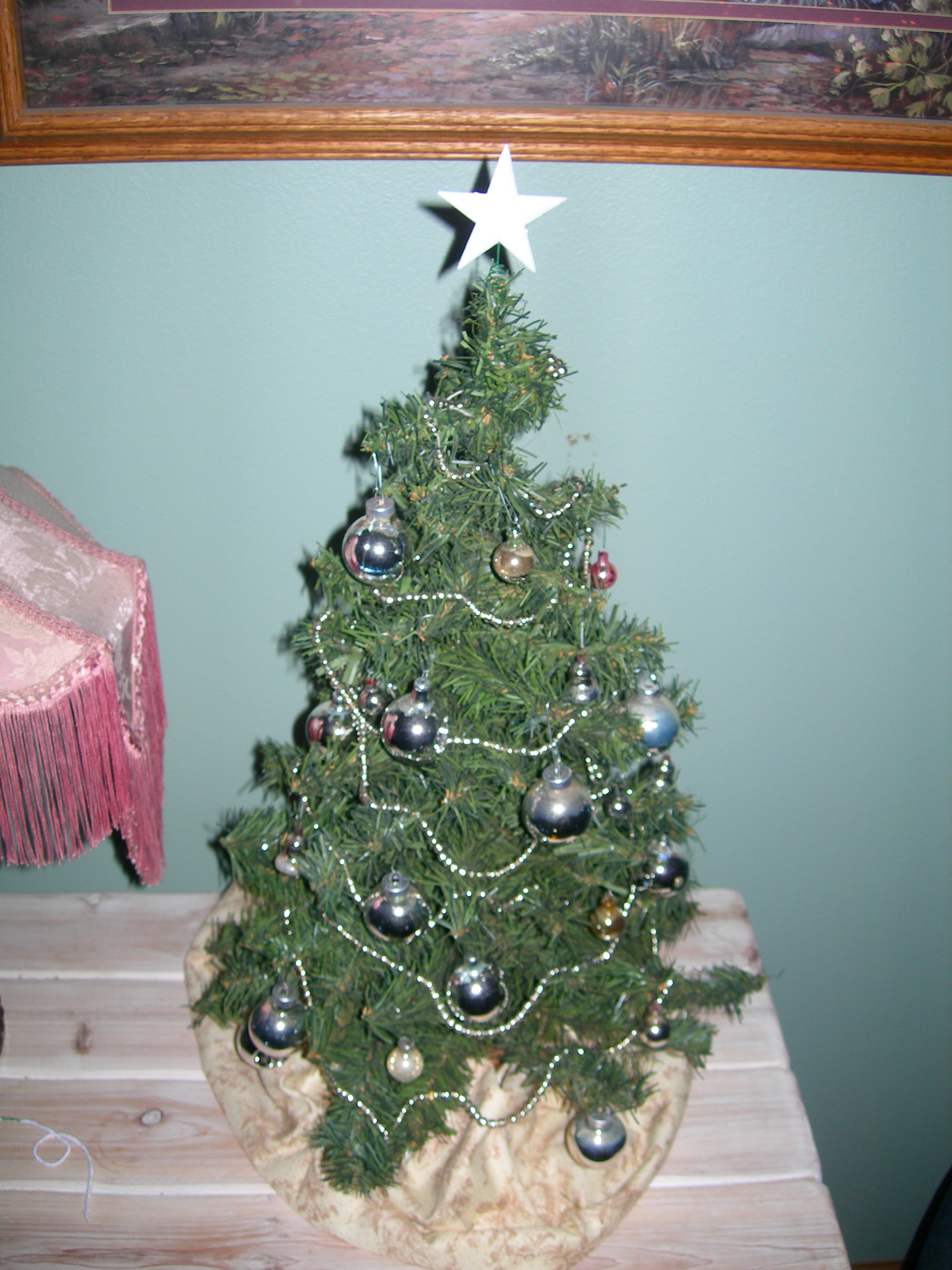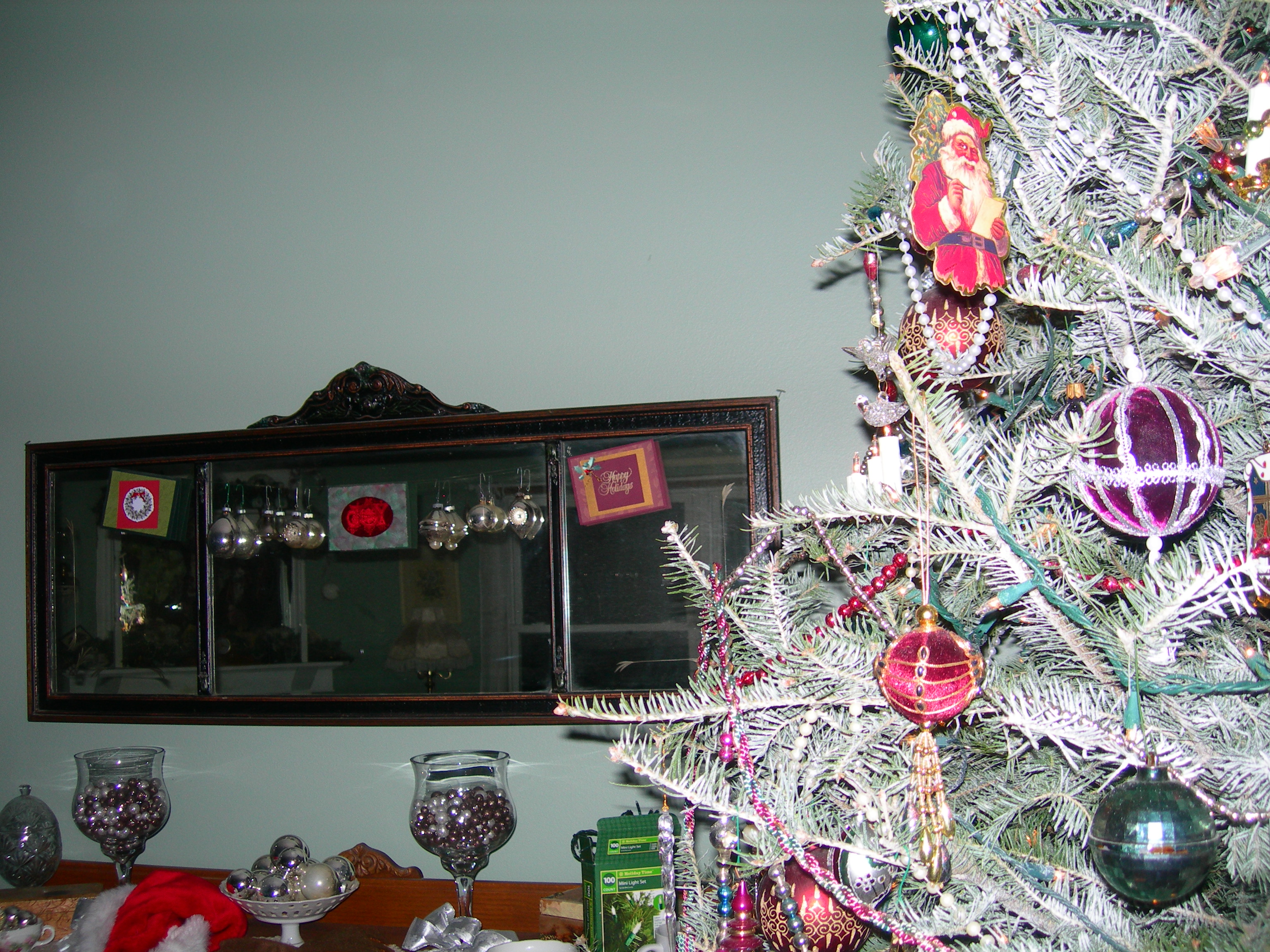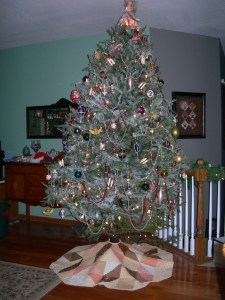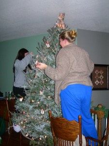 mel and tina putting the antique beads (a combination strand from Grandma Andrajack and Grandma Zimmer) on the tree. Hannah’s Legacy is to the right of tina.