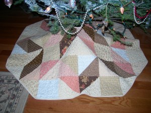 Mom’s new tree skirt {Christmas Romance} made from chocolate, peachy pink, and cream. (we have a topper in store that is made from the same colors…gorgeous and perfect for a shabby christmas).