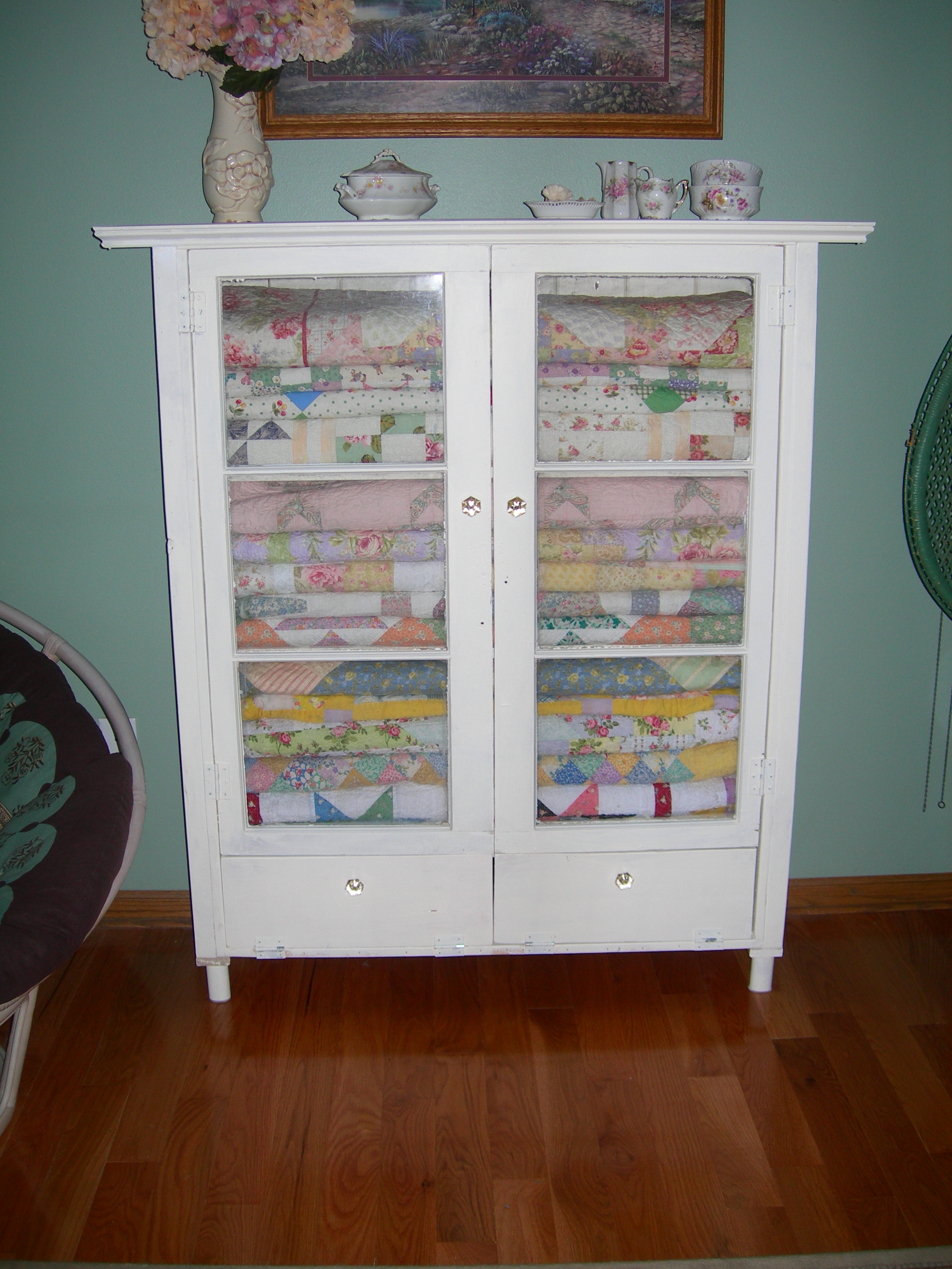 dad made this cupboard for mom for christmas. he will be making one for the shoppe (selling price only $350). it will be painted Innocence by Behr. if you are interested let me know. happy quilting, apriL