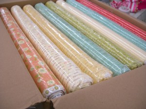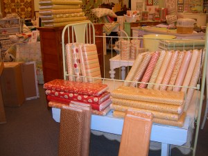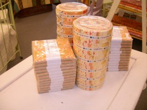 Good NEWS! Whimsy came in last friday…we have the samples done–1 still needs quilting and the layer cakes aren’t rolled yet, but we’ve got it out and it is luscious–just as moda fabric always is. we are still taking orders for Happy Days–see Quilt Sampler tab above for more information. Remember to mark your calendars Saturday, May 15th…to stop by pick up a magazine, your kit, and celebrate with us! Some Whimzy pics for you…