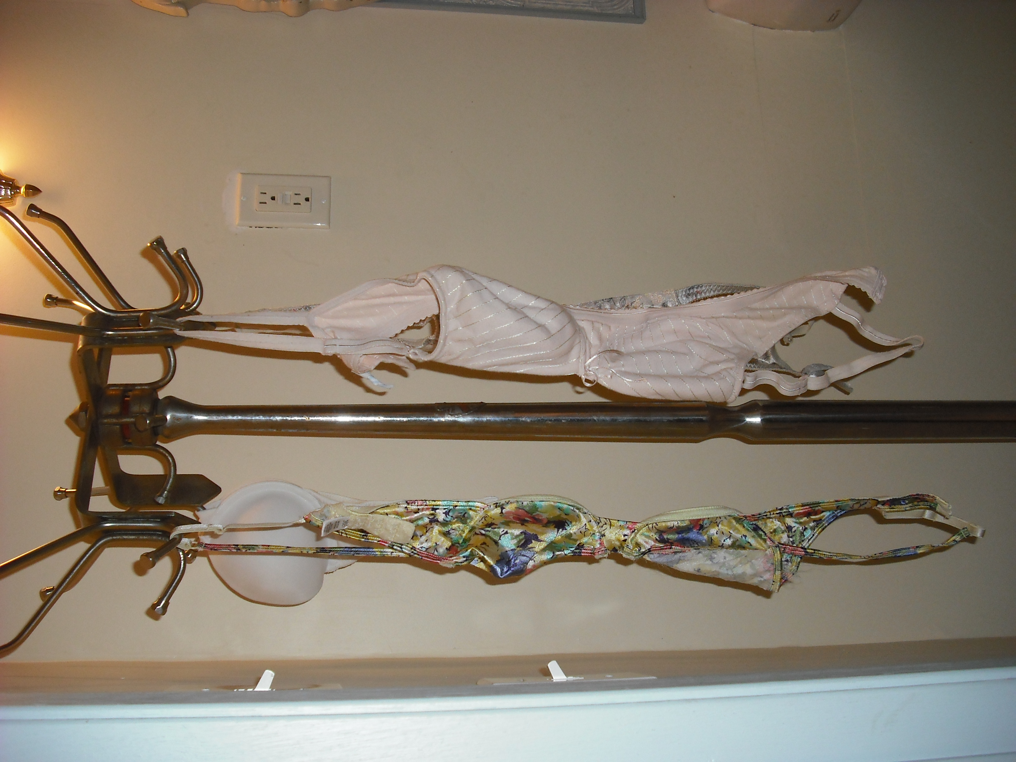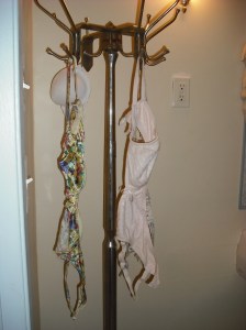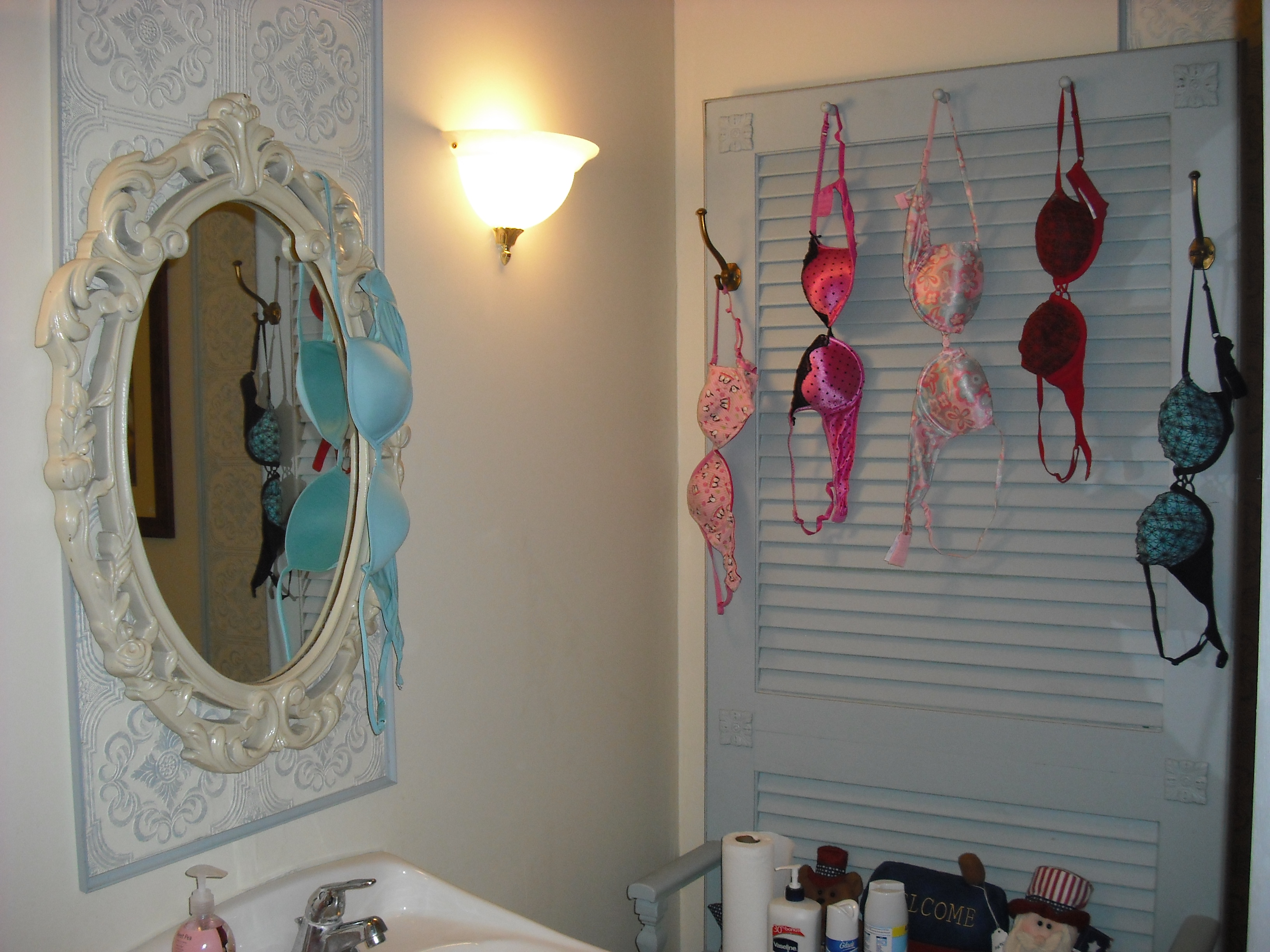 a few pics from the bra hop. our front window and the bathroom were decorated with bra’s. the pic of the front window isn’t very good but you get the idea.