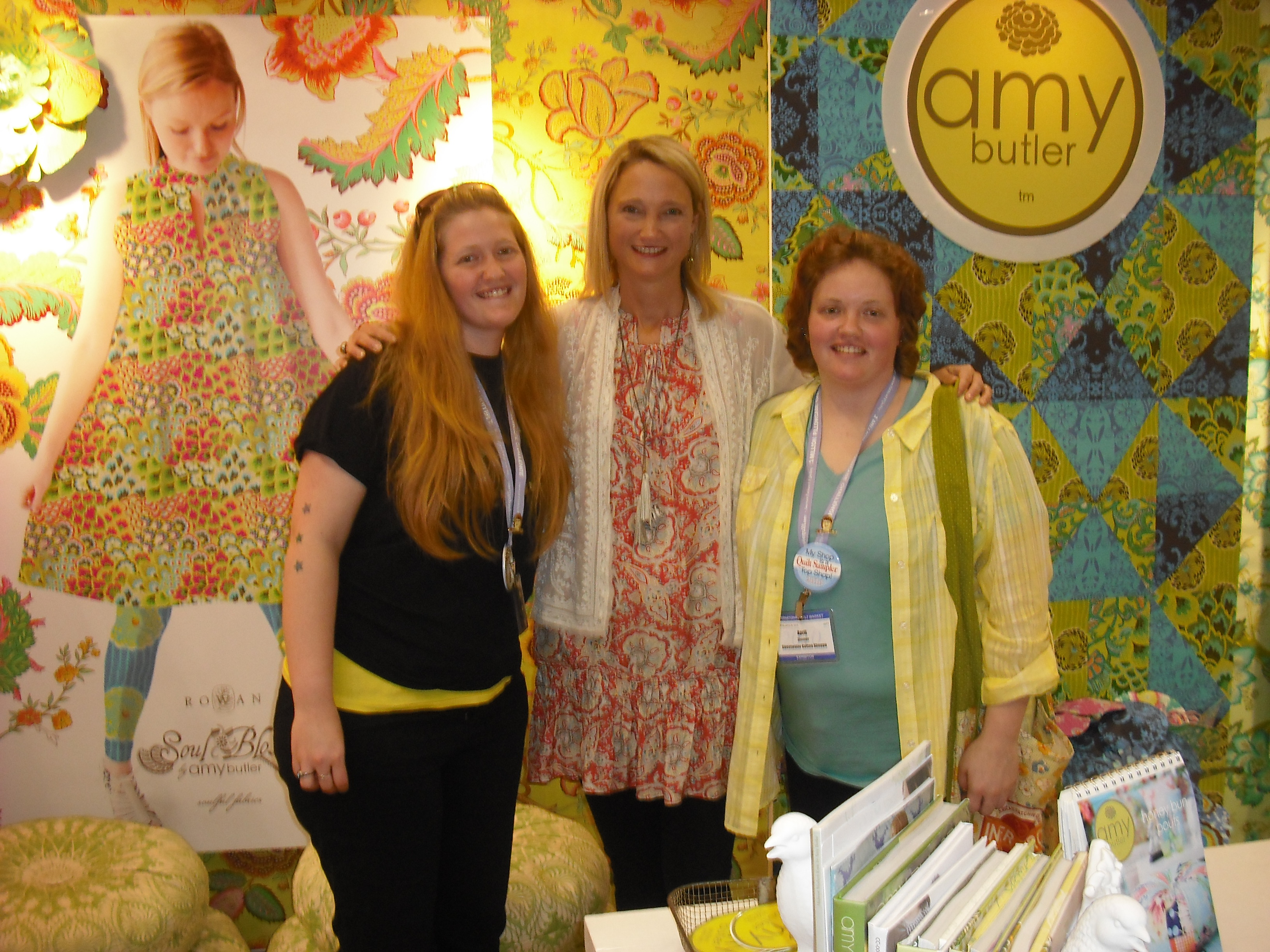 okay…now onto pictures of people…i’ll put them all in thumbnails and hopefully you can click on them to get them to be full size… from left to right…Robyn Pandolph and mom…Robyn Pandolph and me…mel, amy butler, and me…Nancy (from BH&G) and me–apparently she had stopped by the booth on Saturday and i wasn’t there, but she told mom and tina that April’s fan club wanted to meet me…