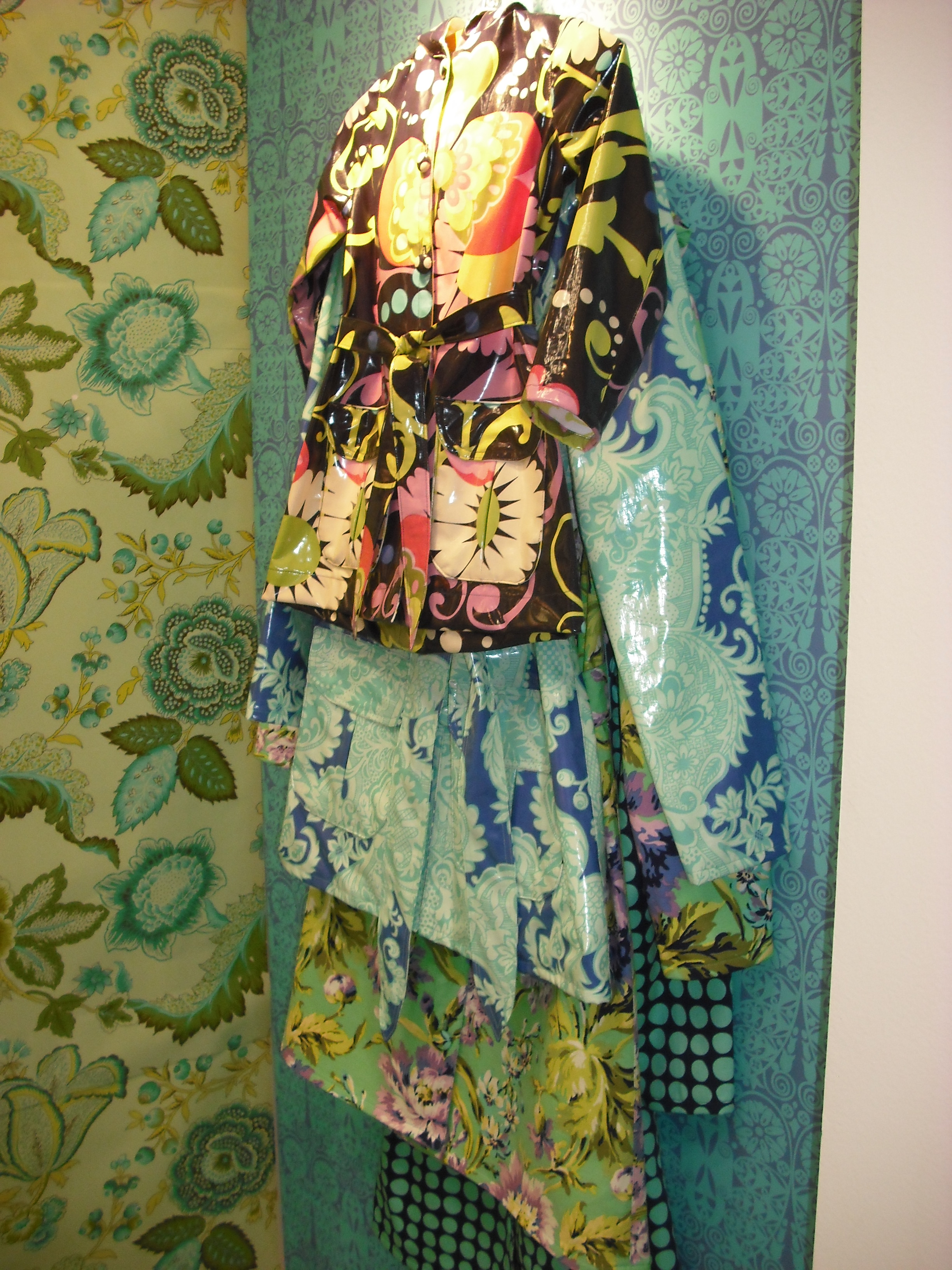 the pic on the left is of raincoats made from her material…they are actual raincoats not just coated fabric…