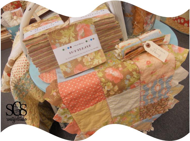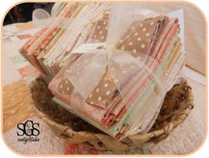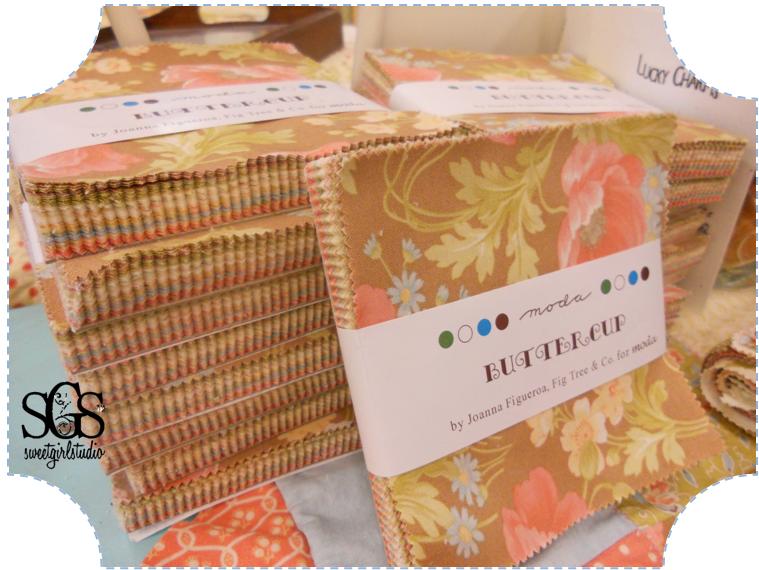 Next up…fun little charm packs…these are the rage…right now we have a dozen of these Buttercup beauties just waiting to be put together into something delightful! Check out our Lucky Charms Tablerunner…it uses a charm pack and backing–that’s it and you’re done…pattern is $3.