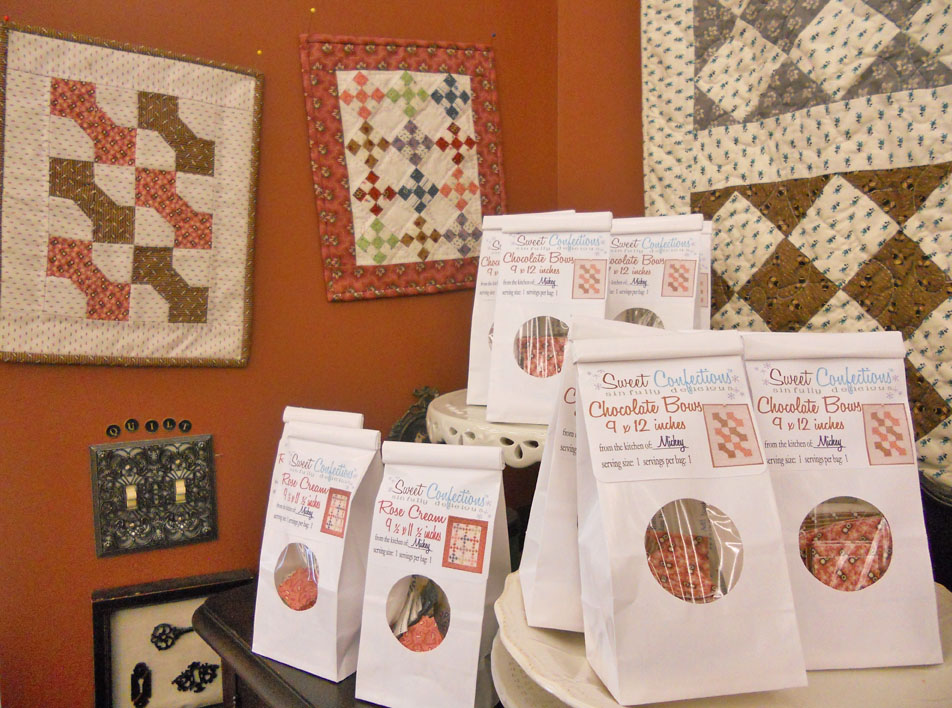 We’ve cut up a new Sweet Confection…Rose Cream is 9 1/2 x 11 1/2 inches and this pre-cut delight is only $14.95 complete with binding, backing, and pattern–plus it is all cut out all you have to do is sit down and sew…