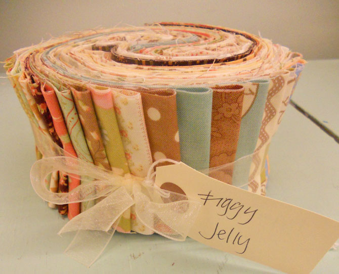Fig Jelly…you guessed it…a jelly of Fig Tree…but not just any Fig Tree…this jelly is 40–2 1/2 inch strips from lines spanning from Buttercream and Fig {their premier line} to Buttercup {their spring 2011 line}. Spanning the colors from cream and butter to eggplant and chocolate.