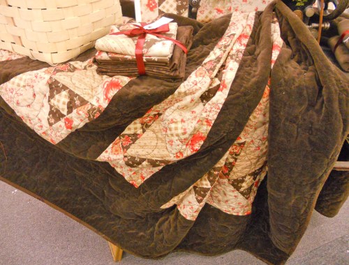 Cocoa Rose uses the new Grace preprinted piece and chocolate cotton velvet.