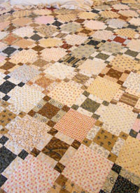 Percy Parker…named after my great grandpa–mom’s grandpa. This lovely scrappy quilt uses a layer cake and shirting prints. At the New Ulm show…this was the most popular pattern–we have only 2 kits left. It uses the 1862 Battle Hymn layer cake and a variety of shirting prints. The blocks are smaller and are set off by shirting squares. Percy Parker works perfectly with the Blissful shams in color sand. check out the kits here.