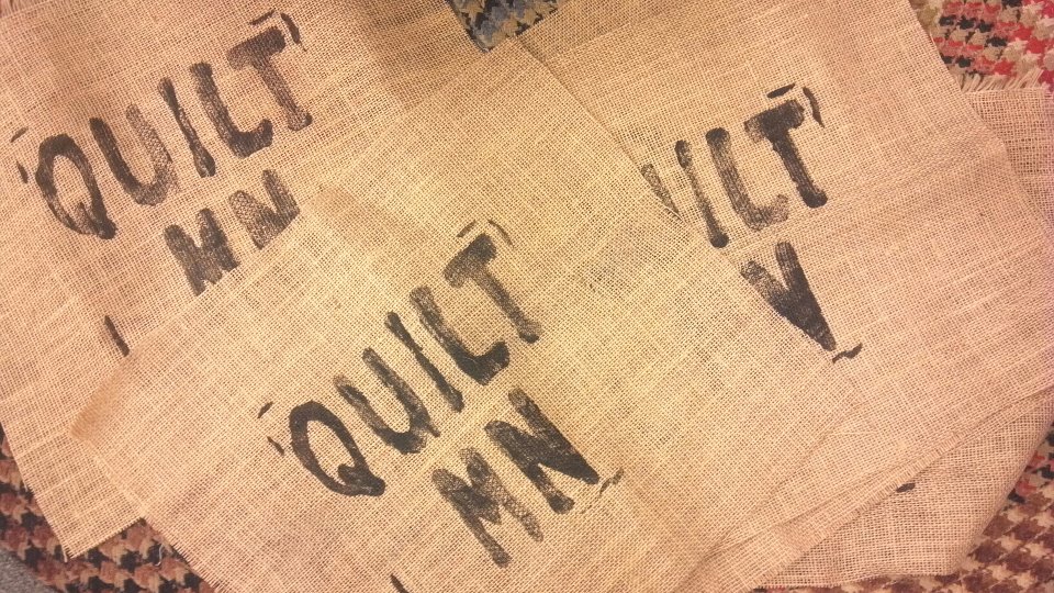 then our stamped burlap that can be seen in the tote…