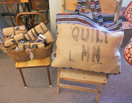 This year, like the last few, we are putting together a book, Minnesota Moonlight ($12.99+tax), with the projects from Quilt MN 2012. The projects included are Easy as Pie, Golden Pond, Backwoods Burlap Bag, Cabin Cases, and Minnesota Moonlight.