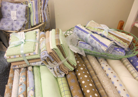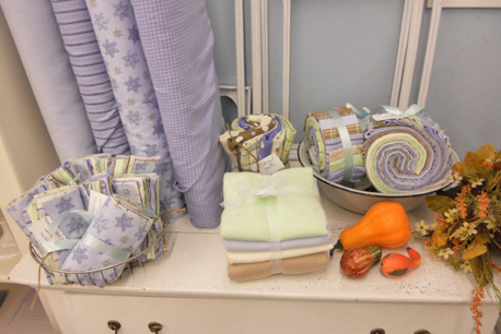 Blueberry Crumb Cake fat bundles…this line is dwindling…but we keep reviving it! it is just SO DARN PRETTY! mom is putting together a table runner for the Loose Threads embroidery class that uses this line along with Quilt MN 2009 and Northcote Range…can we say wintery?