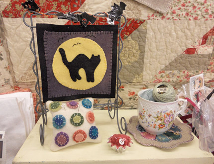 i love this so much! we put together kits of October Bats and Cats…just $15 gets you the pattern, freezer paper, wool, thread, and bat garland.