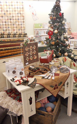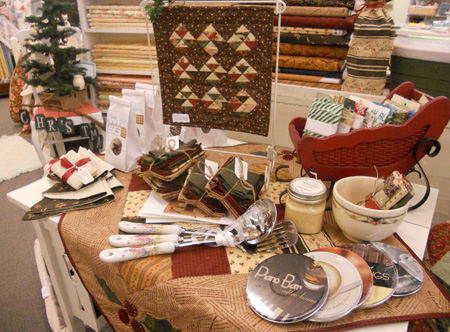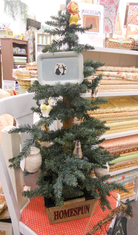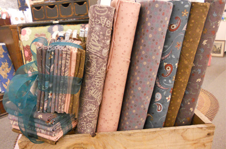 lastly….Simply Imagine…i mean the line by Whimsicals…just that! whimsical as are all their wonderful lines. we have a small grouping of it, but it is simply adorable. Mom is currently (as i’m typing) working on a pink and red one using this lovely peachy pink, cranberry, and green on white sprig…Cranberry Sauce. Pefect for Christmas…i think it could even make it to Valentine’s Day.