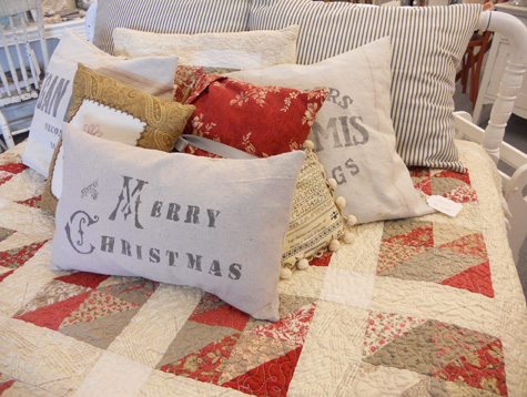 a little burlap, painters cloth, and grain sacks; which is all over the decorating scene now! just a few ideas to get you going. The quilt on the bed is French Countryside…1 kit left…here.