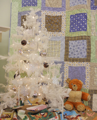 the first tree is made up of mostly sage green, tan, and red to compliment the Eskimo Kisses quilt that uses sage green terrycloth.