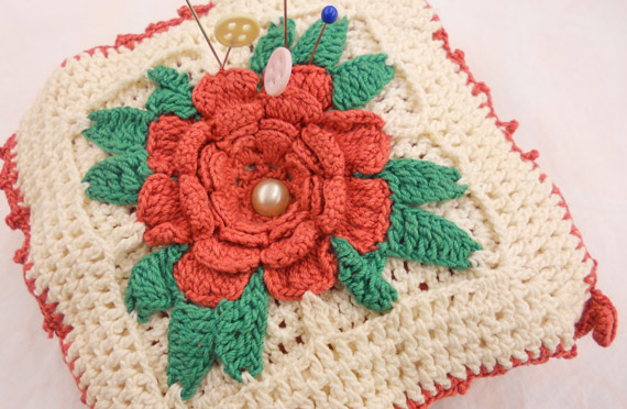 Little Darlings Pincushions…using vintage buttons, vintage potholders, and a little bit of wool. Candy Pink and Mint