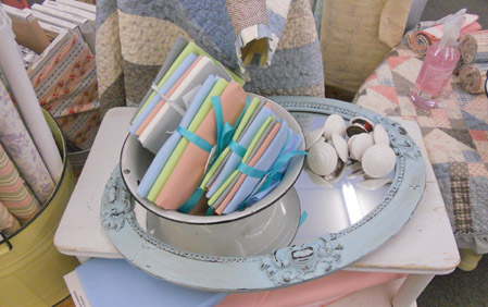 a Whisper of Roses…a little bit fig tree, a little bit cottage, totally and completely Sweetwater Style…mom is finishing up a fun new bed-size cottage style quilt that has a little ruffle on some of the blocks–so cute and sweet and makes you feel all happy! that one will be quilted and kitted sometime next week….until then i’ll be listing fat quarter and fat 8th bundles on etsy.