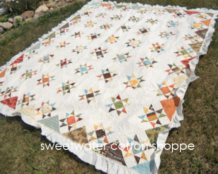 Minnesota Glamping…our book of Quilt MN 2013 projects will be packed full of designs that will showcase this wonderful Minnesota inspired line. we’ve taken these wonderful prints and put a spin on them. Added some ruffles, soft-hand unbleached muslin, and some more ruffles!