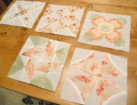 we just laid out the blocks and they are SO pretty! we are going to put in a blush pink cornerstone along with white sashing and the sleeping bag fabric for the border.