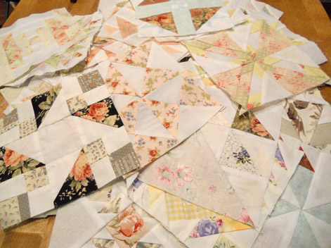 as for the sashing…white muslin. cornerstones will be blush pink–the pink we use in our blissfully cottage shams.
