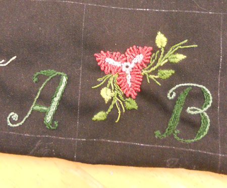 today we continue with “B is for Bougainvillea”…and we (mom, tina, and i) are each doing our own sample on a different color fabric.