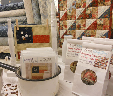 our newest Sweet Delight to add to the group is July Flag. this petite flag is just 6 1/2 inches square. the kits are complete (you will need a small square of batting) and even includes the 3 white buttons.