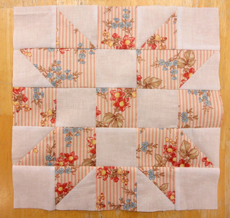 I did not realize that i never gave a final size of the block. the blocks should measure 12 1/2 inches square this includes a 1/4 inch seam allowance for joining them to the sashing.