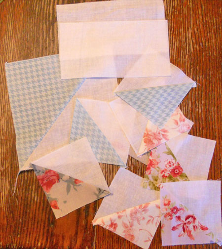 1–3 7/8 inch square dark 1–6 7/8 inch squares dark 4–3 1/2 x 6 1/2 inch rectangles light 4–3 7/8 inch squares light 1–6 7/8 inch square light (sorry i missed this yesterday morning…thanks for letting me know wanda!) 3–3 7/8 inch squares various medium prints(the rectangles didn’t make it into this picture…you can see them at the top of the next picture though)