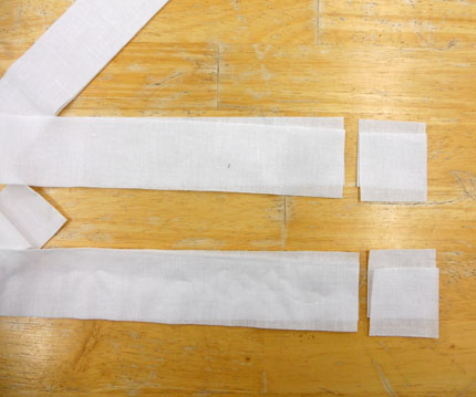 Cut 2–2 inch squares off each end of the 11–2 inch floral strips for a total of 22–2 inch squares (set aside for next week)