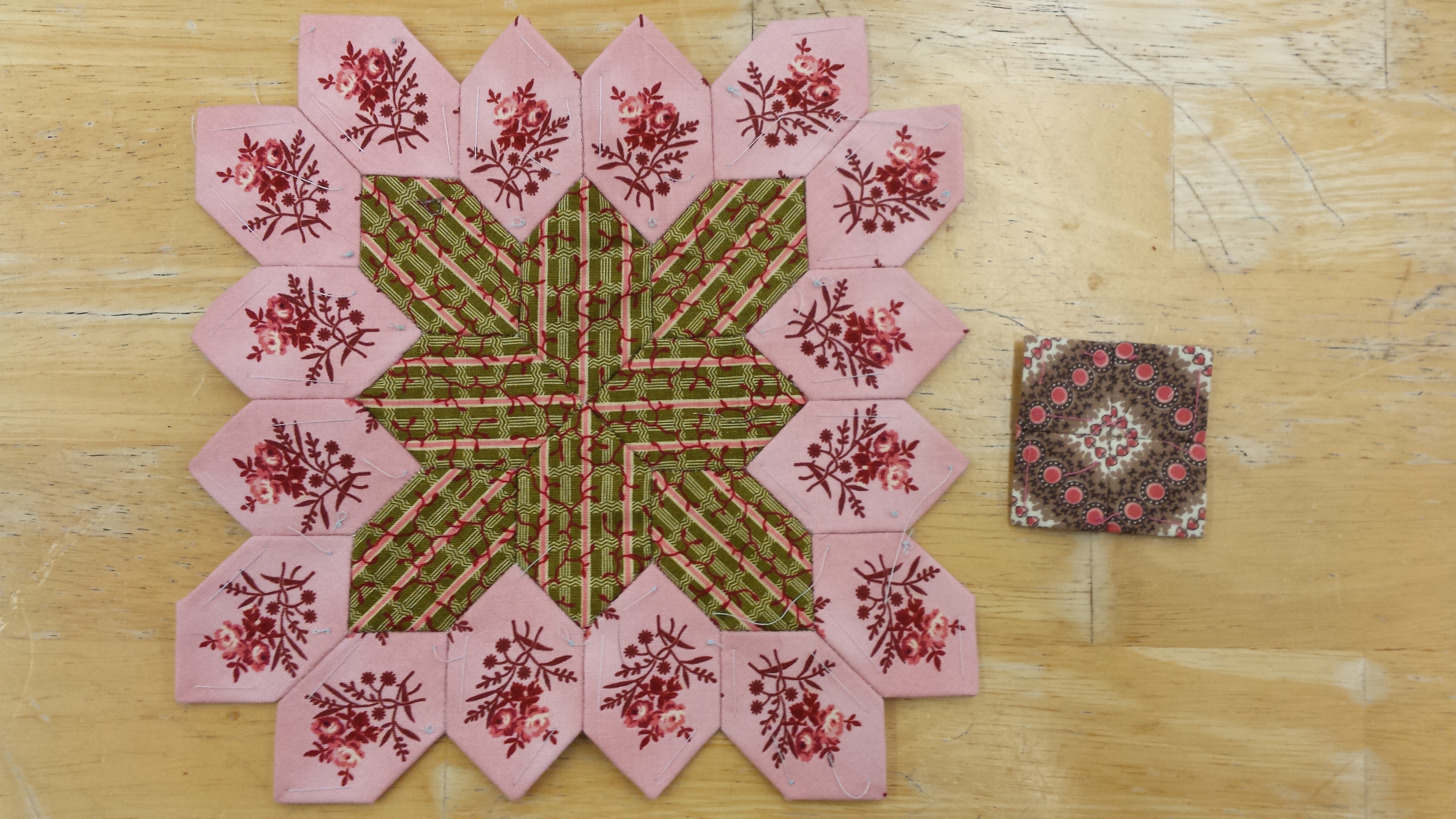 I won’t go into details about Lucy Boston, but I will show you my first block today. if you are still interested in joining us check out our etsy shoppe for the Lucy Boston Patchwork of the Crosses book. If you are following along, I will be doing 1 POTC cross and at least 1–4-patch a week. I posted an English Paper Piecing tutorial on the blog last Friday so I you are interested be sure to check that out…here.