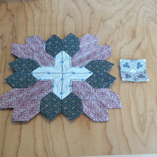 if you remember from last week I had 4 rows done…I have just 1 flower/patchwork/cross left to put on to finish up row 5. the last 3 rows will take a bit longer because I don’t have the cream basted and sewn to the flower/patchwork/crosses yet. so I see lots of basting cream honeycombs in my future…i’ll post pictures over on instagram of my progress…I’m getting so excited to see it all finished, but I am enjoying the process.