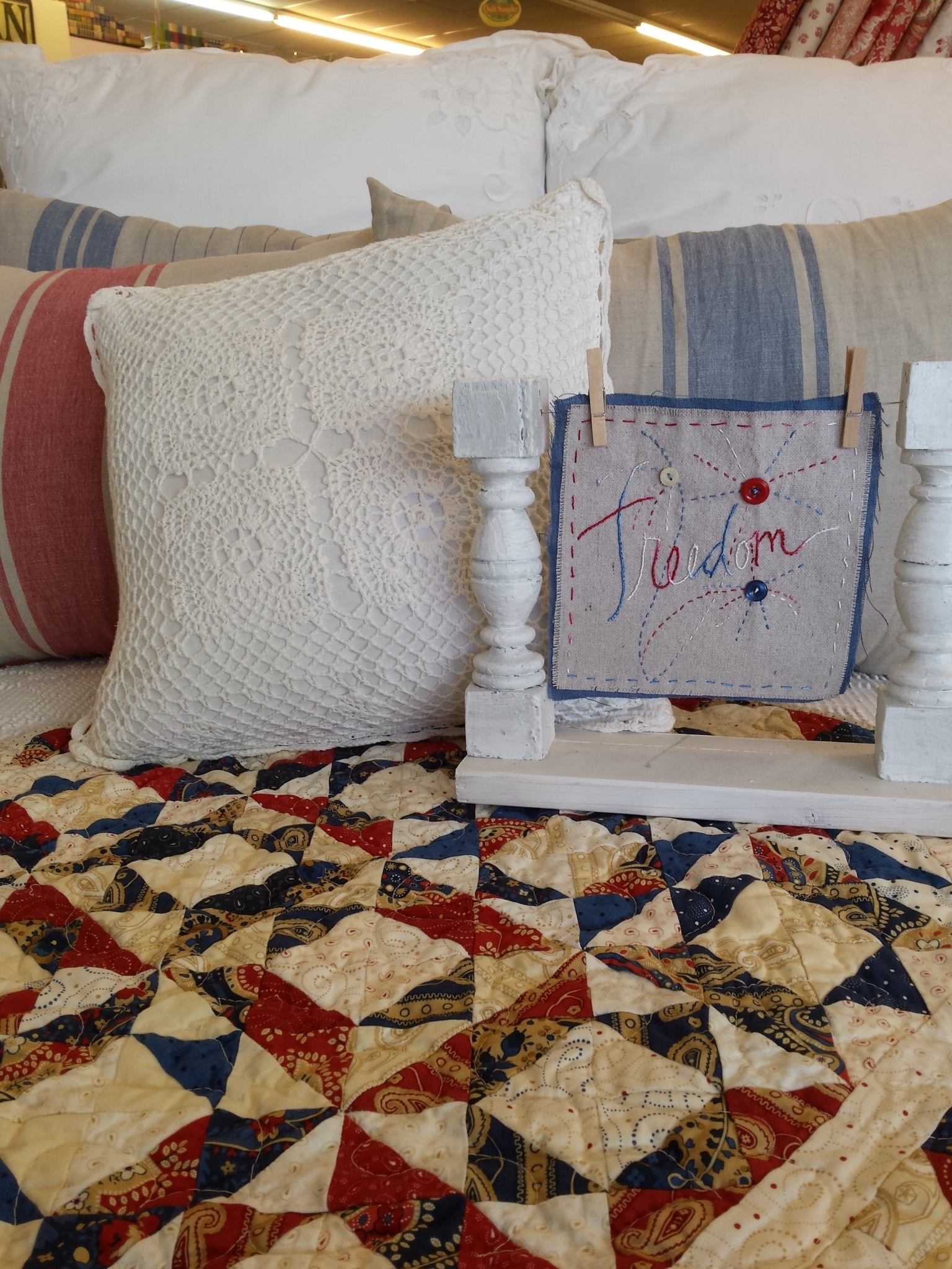 I spent the morning redoing the window…more on that once I’ve finished, however, I couldn’t publish this post with out a shot of our newest stitchery, Freedom. kits are available with plenty of time to get it done before july!
