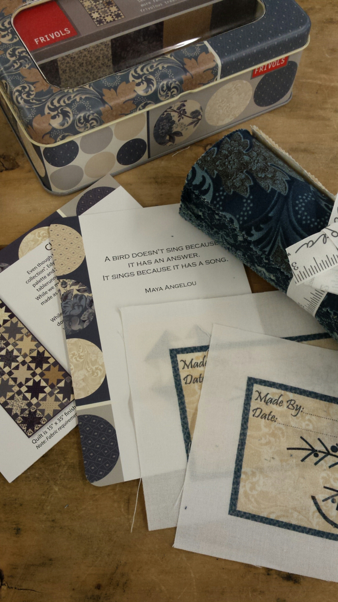 Frivols 12 has arrived and the blue and brown combo is lovely and the tin is such a soft grey…it may be close to my favorite. I just listed them over in our etsy shoppe.