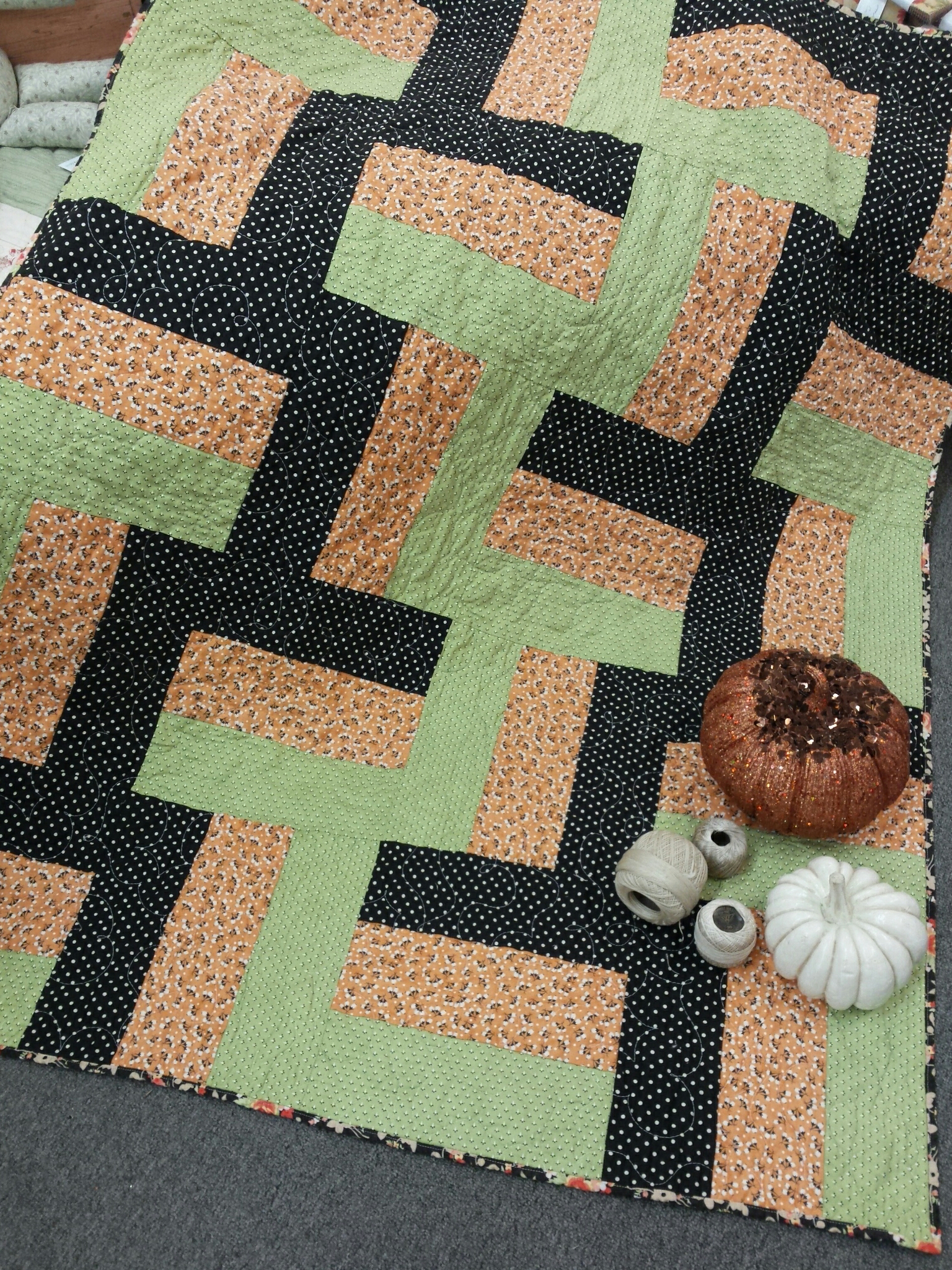 Wicked…48 x 61 ..this delicious project is just right with chestnut street prints in wicked witch green, chalkboard, and pumpkin.