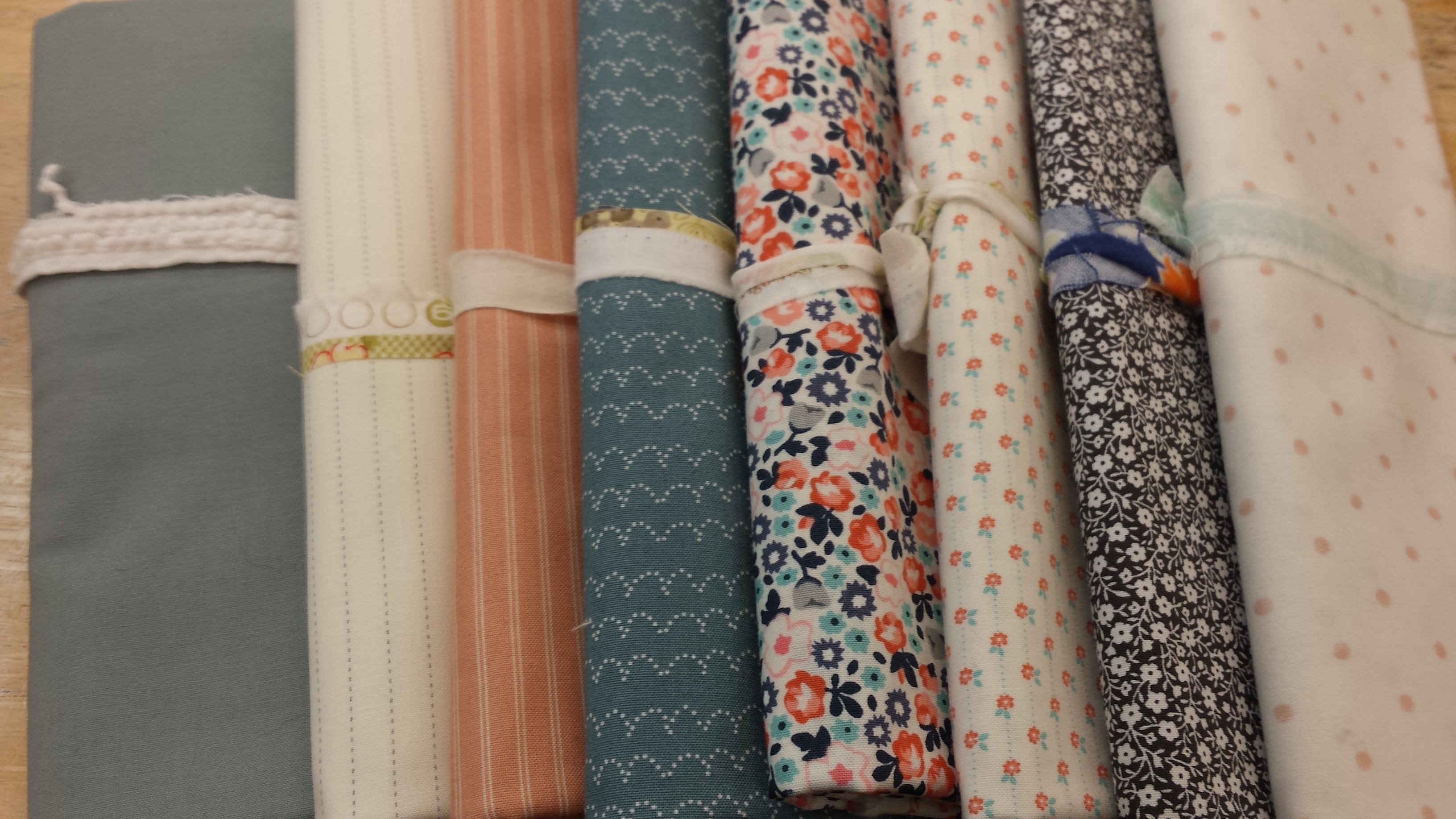 from the left…bella, sweet marion, andover stripe, bambini fabrics, sweet marion, sweet marion, sew and sew, 3 Sisters favorites.