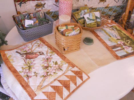 from left Table Quartet, Stripes, Lakeside pillowcase, and Lakeshore