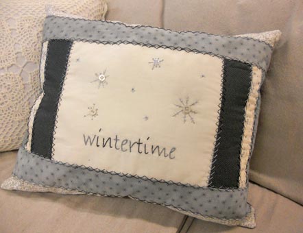 after several inquiries as to if there was a wintertime pillow to go with the Summertime, Springtime, and Harvest-time pillow…we thought it was high time we whipped one up.