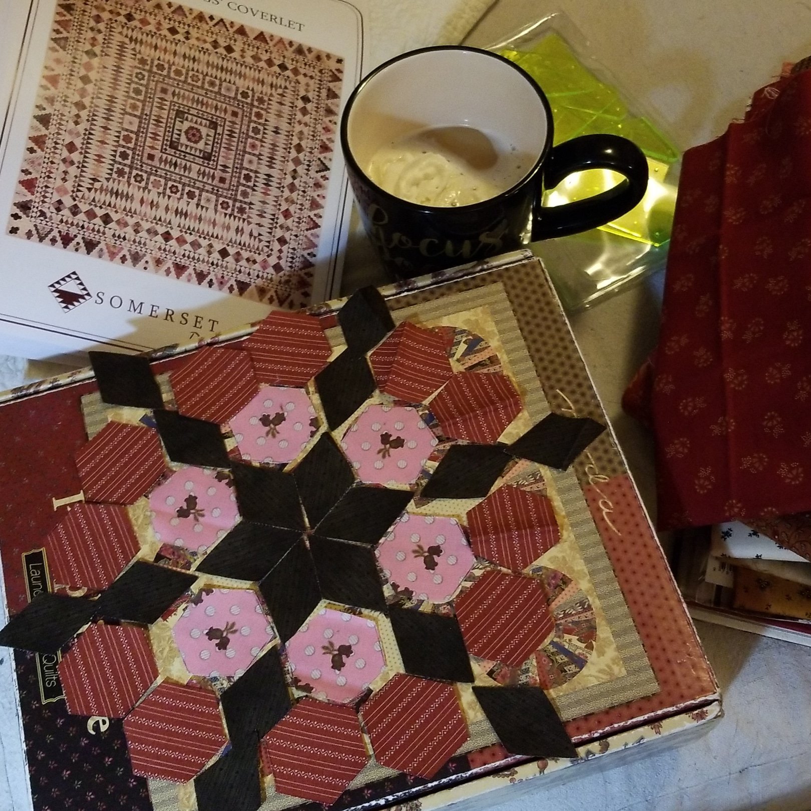 Didn’t work today since mom and i switched this week, so we can both work tomorrow to load for the woodbury quilt show. Thought i better pop in with an update on Lucy…had plans to stitch up the last block…and realized I’m short a honeycomb…of course…