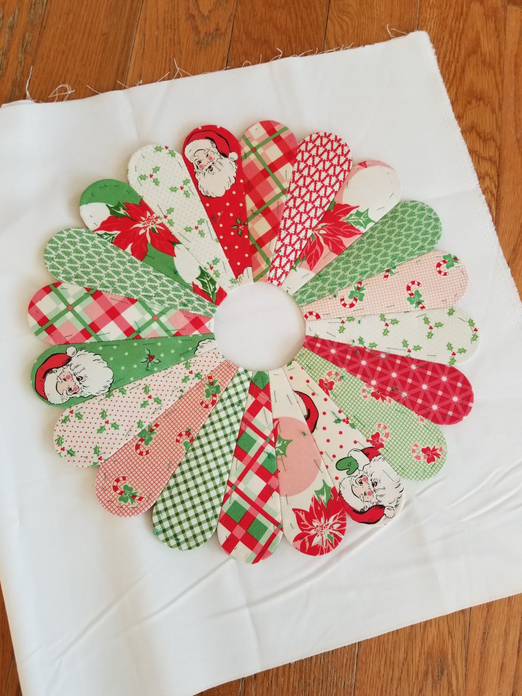 This Dresden is based on a pillow my paternal grandma made. Her plate consists of 5 colors…but i couldn’t pick just 5 of the Swell prints to showcase…so i picked all 18 and added in a couple from Good Tidings to make this pillow truly spectacular! i plan on getting it all finished up in the next couple days so it will be all ready for the Capital QuiltFest in Bismark…i do have kits of it ready to go.