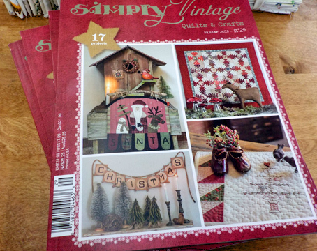 if you are looking for some inspiration…the new Simply Vintage winter edition by Quilt Mania is brimming with winter-y and Christmas-y projects including quilts, wool appliqué, embroidery, and Christmas crafts. 17 different projects total to get you in the mood for Christmas.