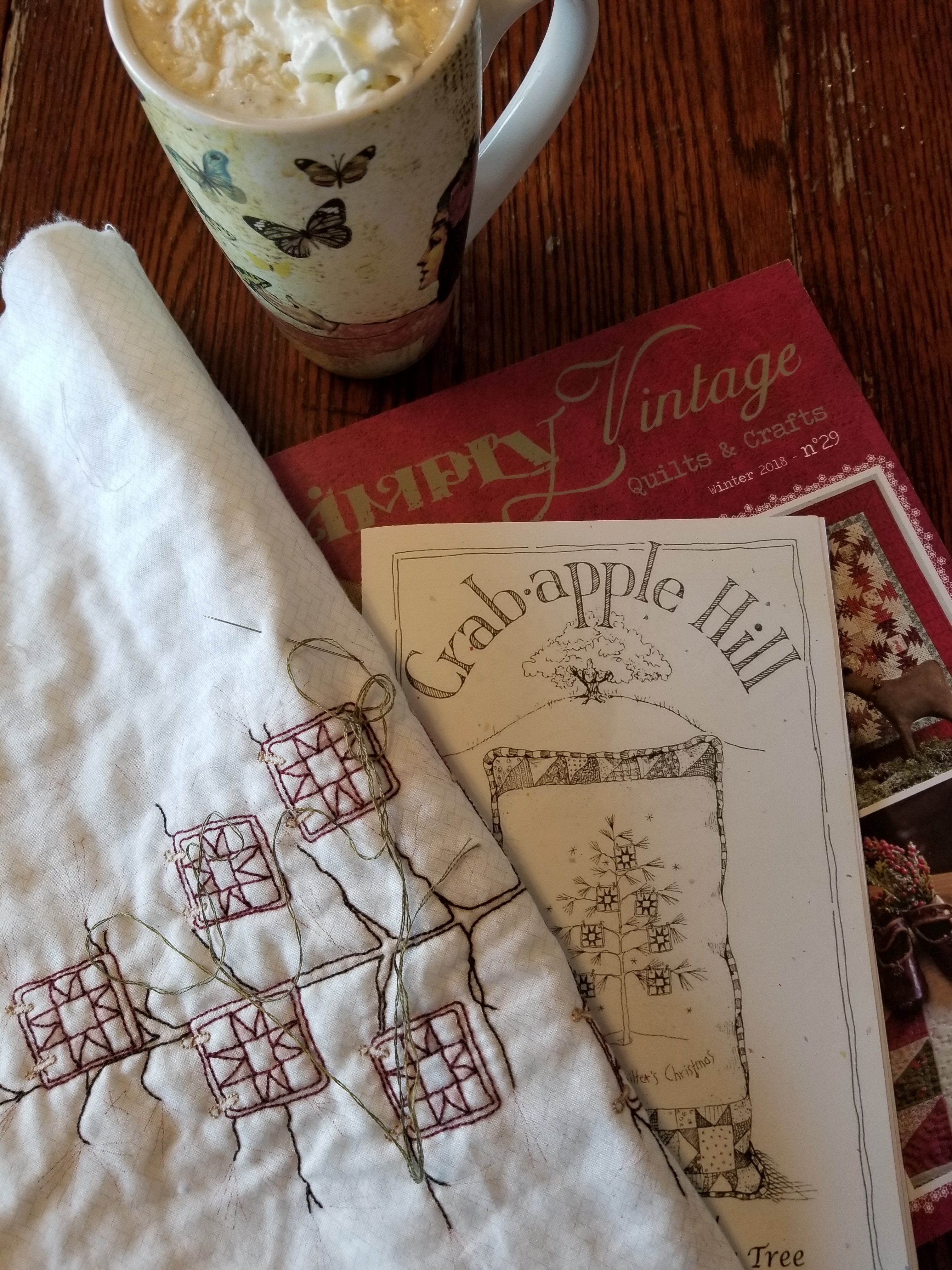 i’ve been neglecting my EPP to whip up the Cozy Quilter’s Christmas Pillow by Crabapple Hill…and it is nearly done! patterns and floss have been ordered and (fingers-crossed) will be here by the end of the week.