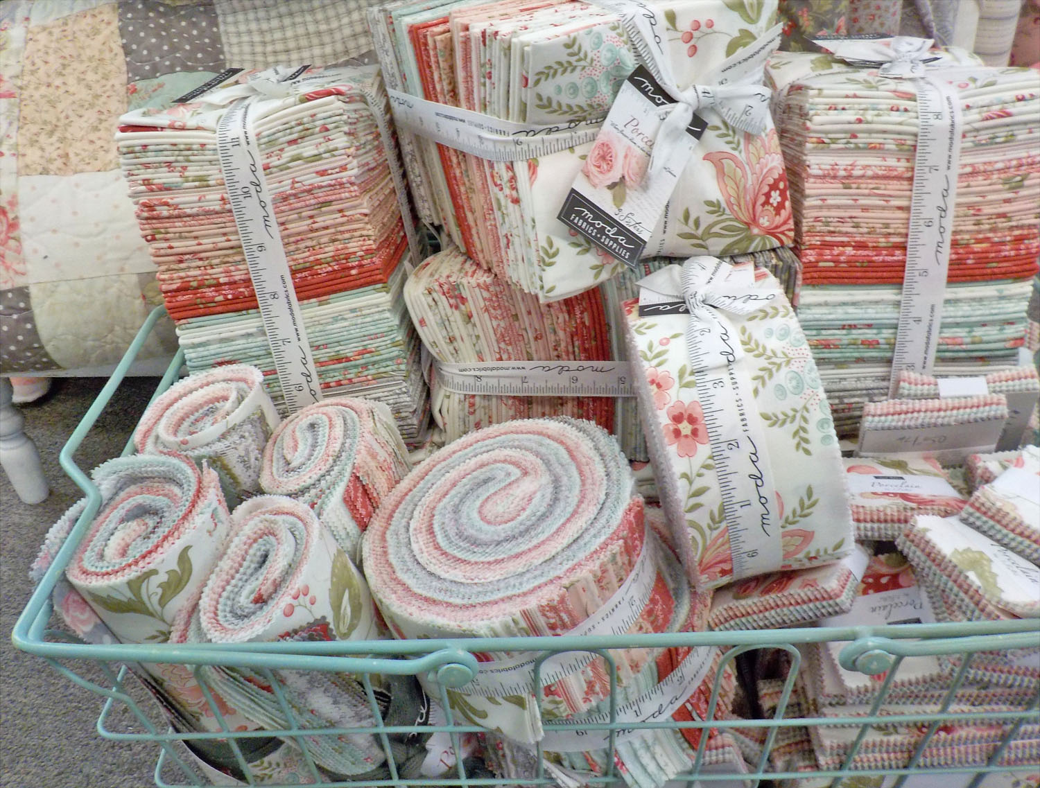 our porcelain yardage arrived a few weeks ago and was a welcome addition to the shoppe with these chilly days it was nice having something soft and sweet and pastel in the shop.