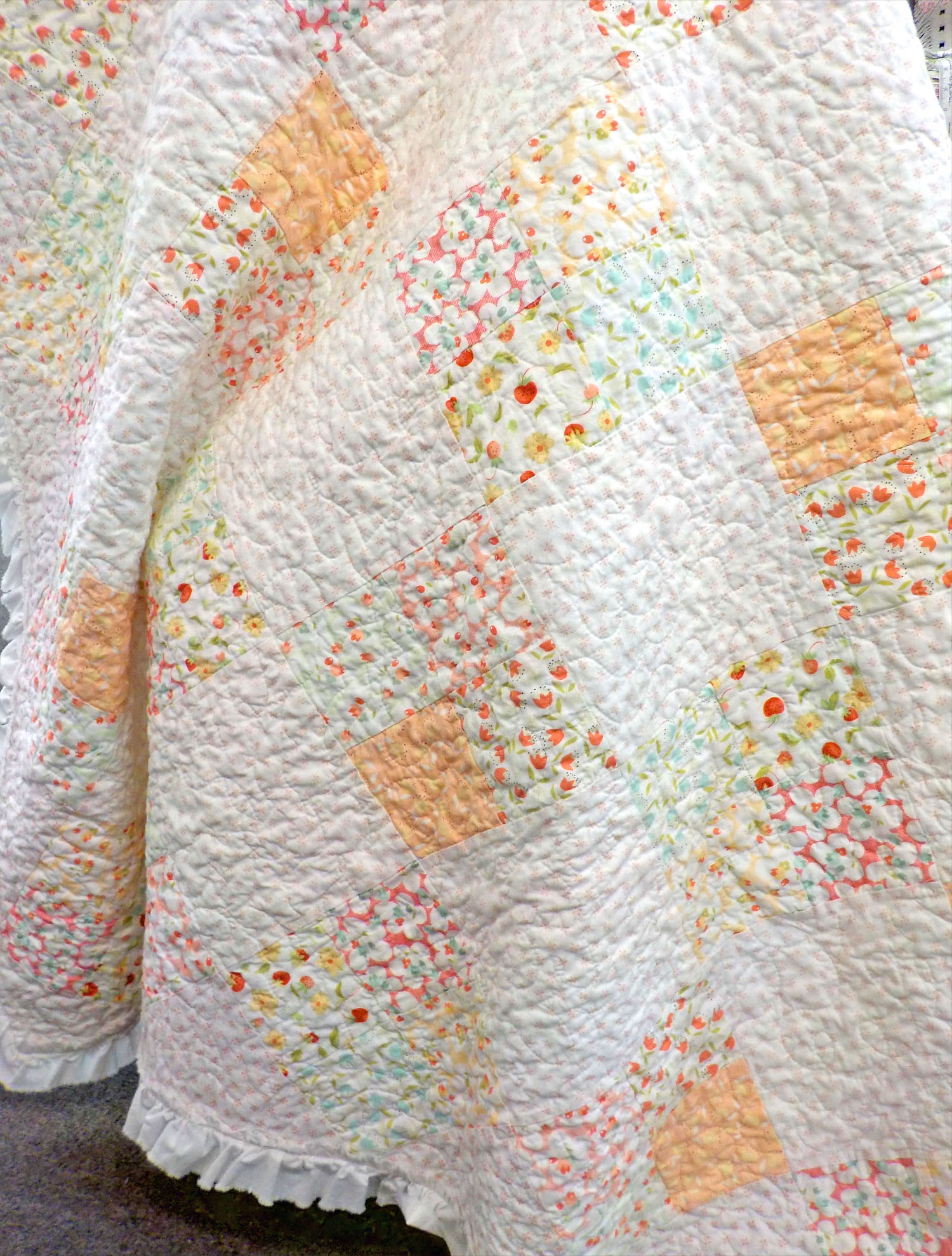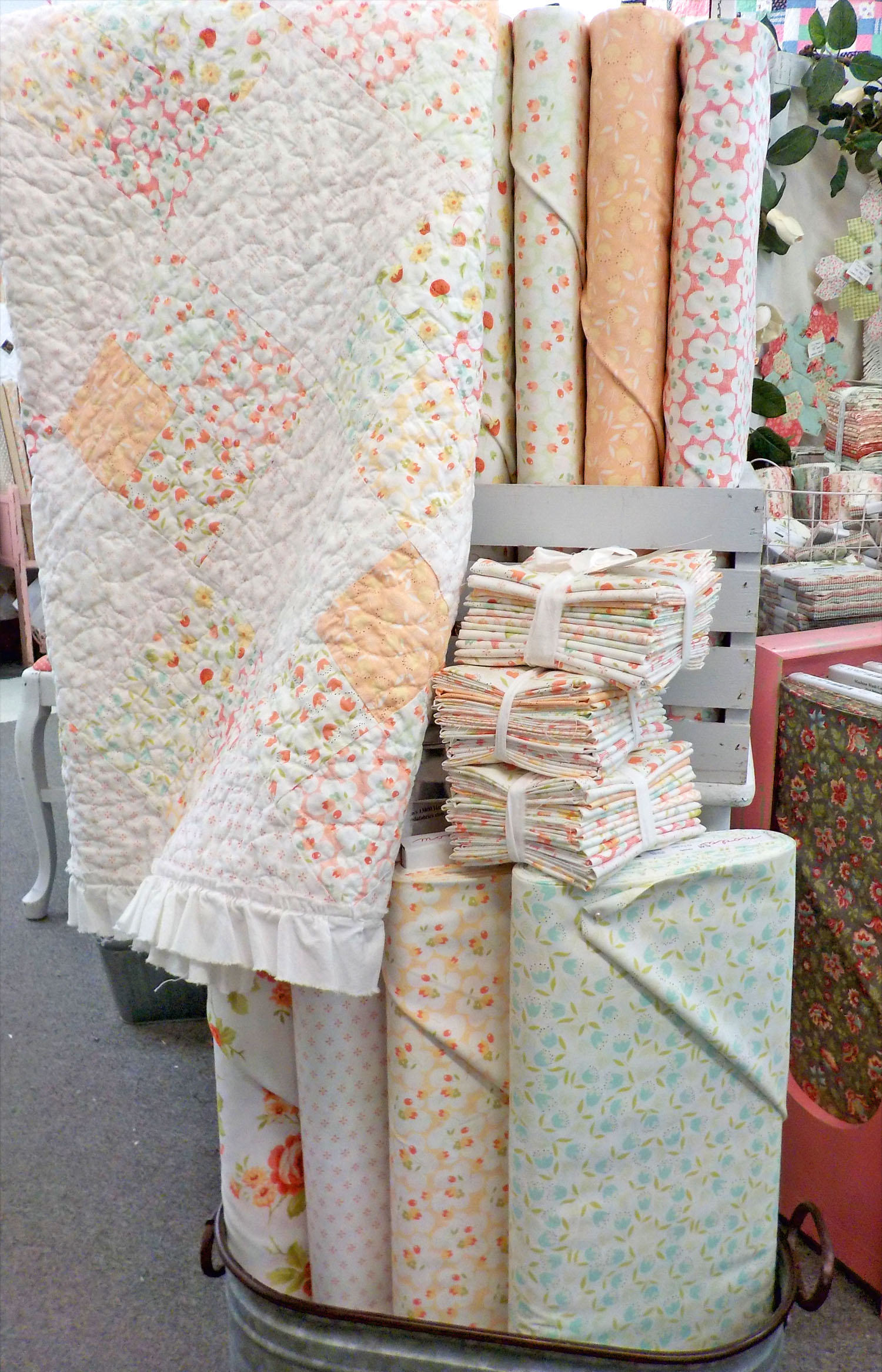 Ruffle…instead of binding we opted for a hand-torn ruffle in Bella Bleach. the quilt just called for a ruffle to make it even more floofy and girly! kits are available…i’ve linked them after all the pictures…i just couldn’t pick 1 or 2 or 3…they are just so pretty!