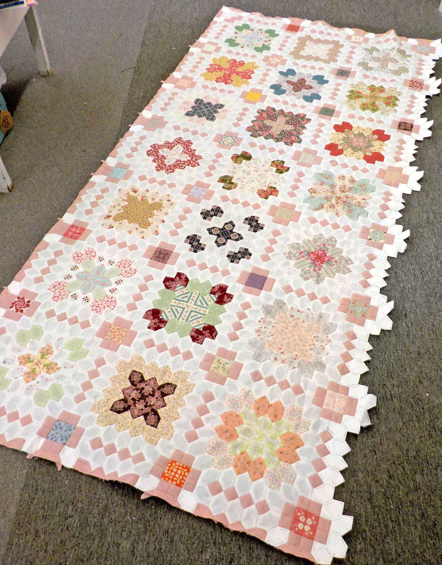 i’ve been working on Lucy for over 91 weeks now. how is it possible i have been working on it that long? I am loving these early blocks…the colors are so pretty and some of the prints are no longer available so its a pleasure to work with them again.