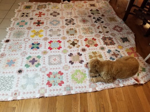 lucy’s summer cottage is nearing the finish line! i have 7+ rows on…(can you believe it!) the pic below shows 7 and Lola-Bear.
