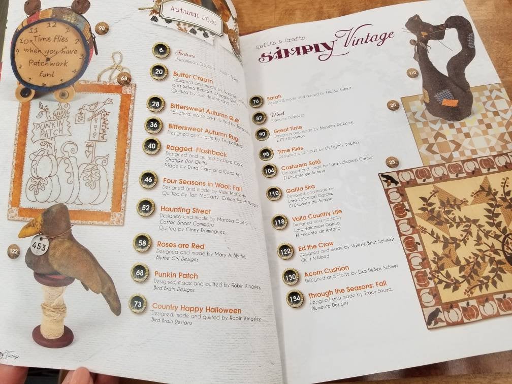 happy friday! the day is nearly here. i’m at the shoppe for just a few more minutes and thought i would pop on and let you know that the autumn simply vintage has arrived and oh my goodness! it is amazing! full of lots of fun halloween/autumn projects…ranging from quilts to small embroidery projects…it has it all…classic autumn toned quilts, pumpkins, spooky houses, and even a recipe to help use up all those apples. i love the little shelf using spools if you are looking to do a little woodworking! also…when is the last time you saw a ragtime…that you didn’t mind going through the effort of snipping 11,000 seams? that cover quilt…a ragtime and i love it! you can grab a your copy here…we only have a handful left!
