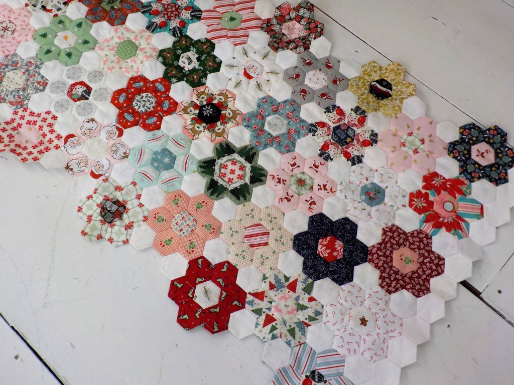 i’ve been working on this hexagon projects since thanksgiving and i’ve finally gotten enough done to get a pattern done up and kits cut.