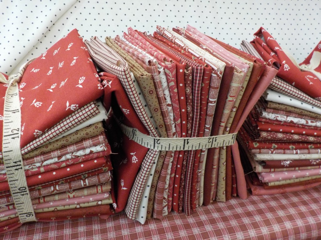 Repro Reds…Sheryl Johnson (of Temecula Quilt Co.) has wowed us with her most recent collection. Civil war era shades of red and pink are complimented with shades of brown, cream, and white. we have the bundles available here…look for yardage to hit the online shop over the next few days!
