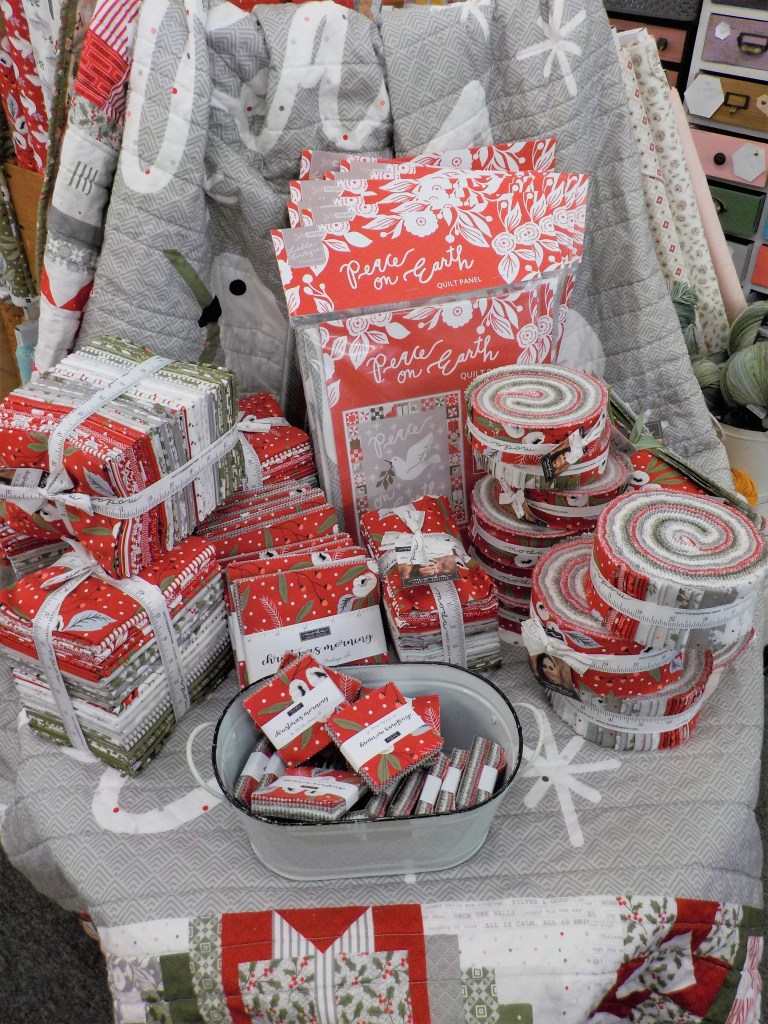 Christmas Morning by Lella Boutique…a classic Christmas collection filled with doves, magnolias, holly, and a plethora of dots and stripes. The entire collection including precuts have just been unwrapped. we channel stitched the dove panel…a lovely quick project for the holiday season!
